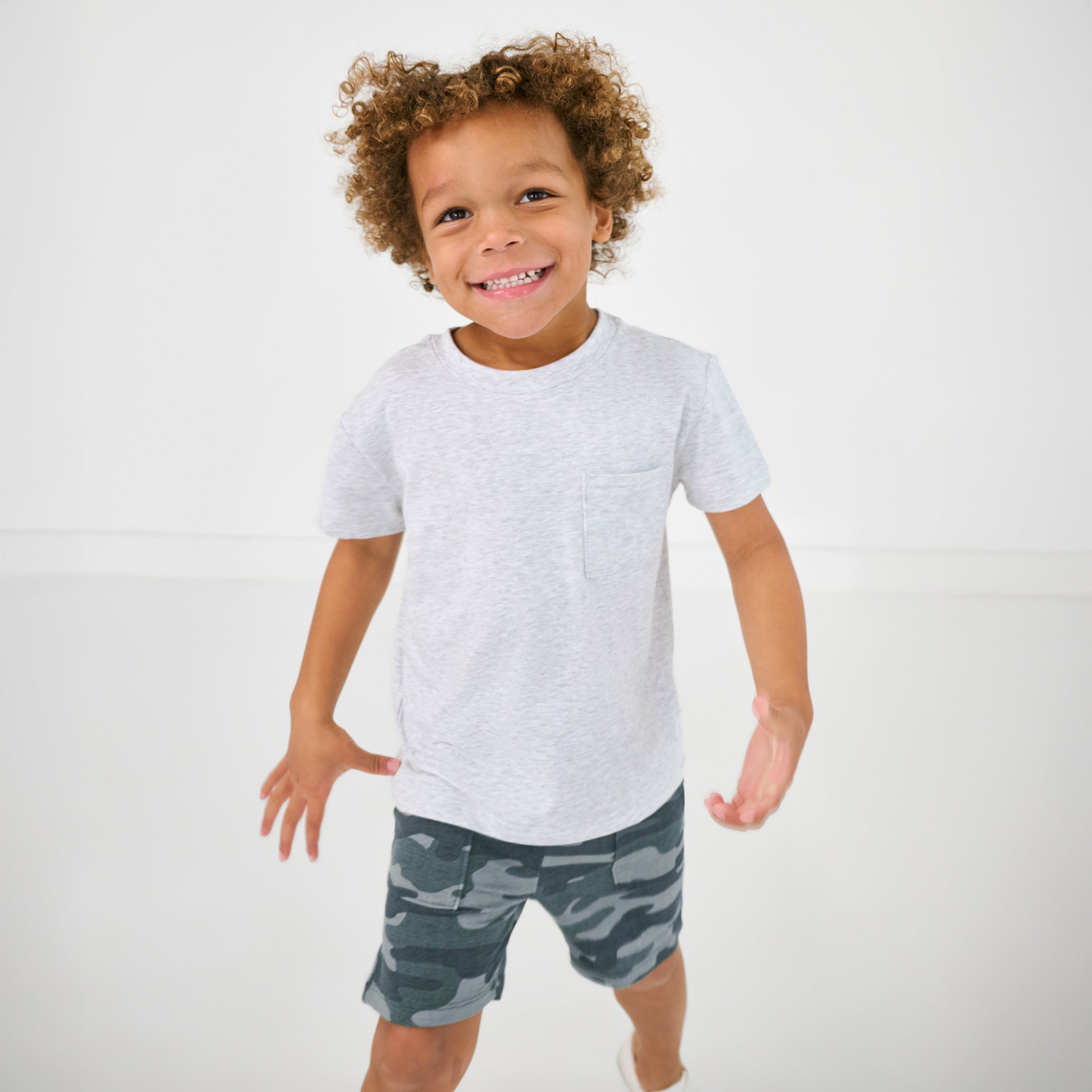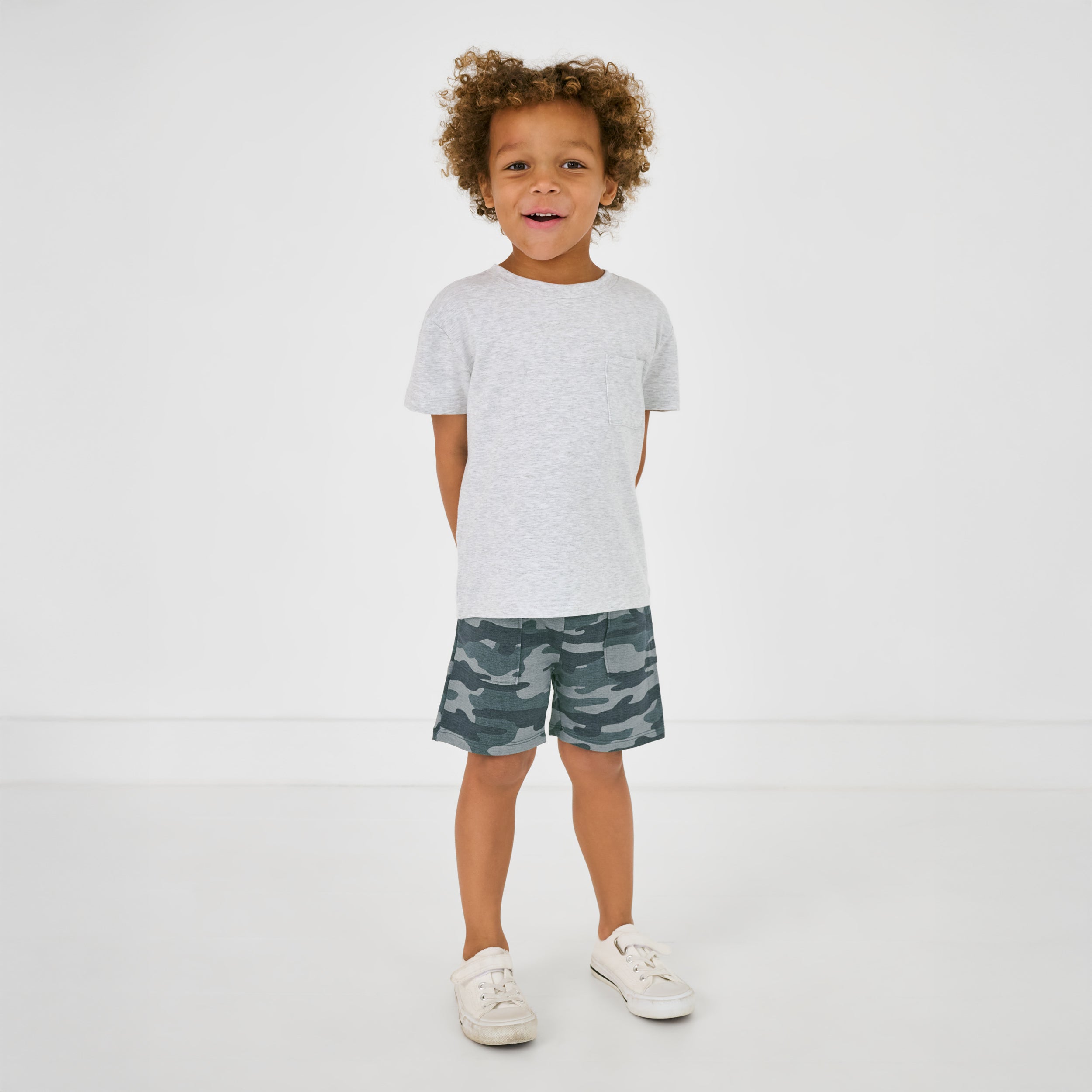 Cool kid alert! These Vintage Camo Shorts are made from our super soft & durable Soluxe? Bamboo. with a stretchy elastic waistband and deep side pockets for keeping treasures. We love them paired with the matching tee or sweatshirt!