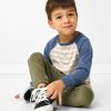 Oh-so comfy for crisp fall days! This Raglan Henley Tee features a vintage-inspired design with navy and heather stripes for a cozy look. Made from durable Soluxe? Bamboo. this boys t shirt has raglan sleeves. functional henley buttons. and a relaxed fit. Pair it with their fave LS bottoms!