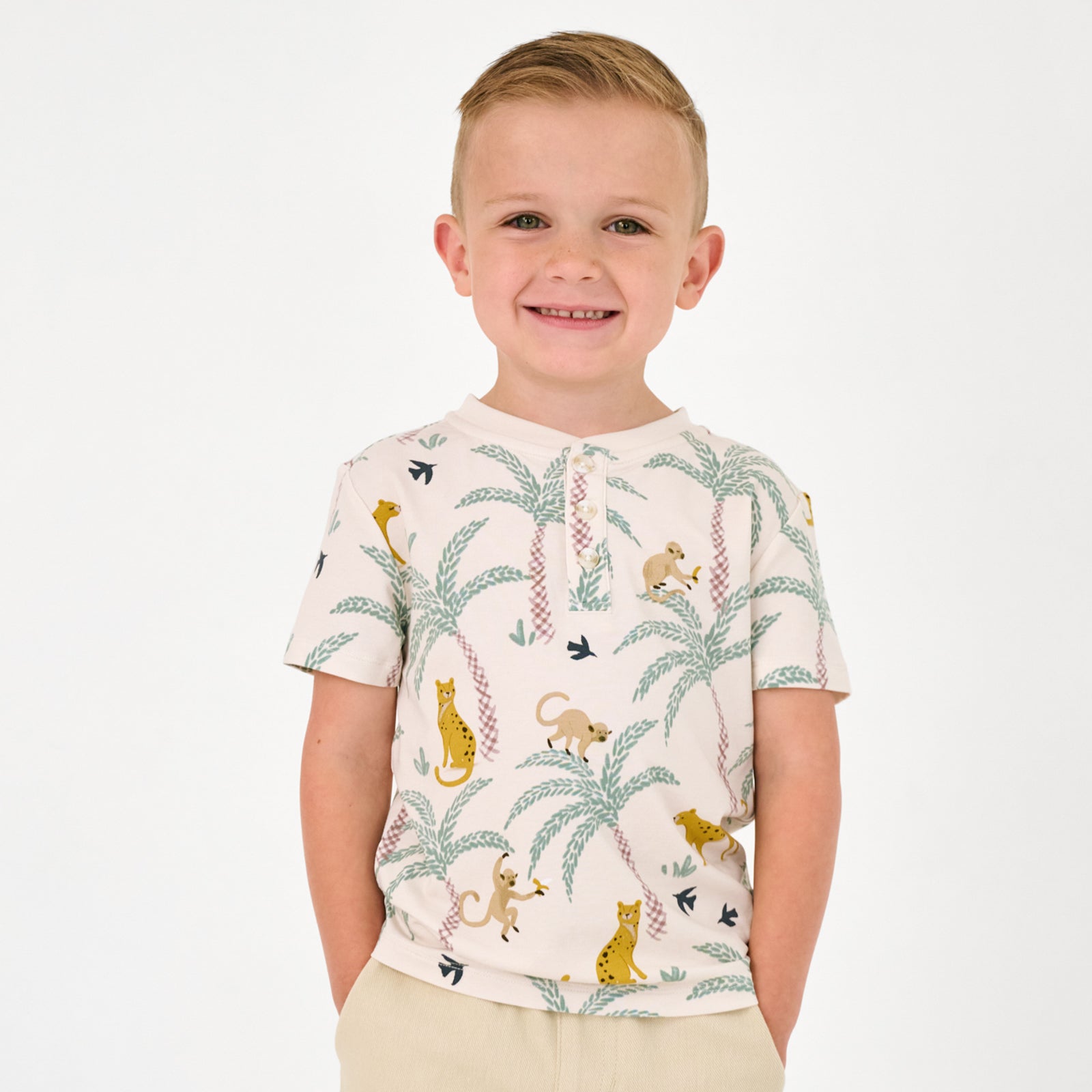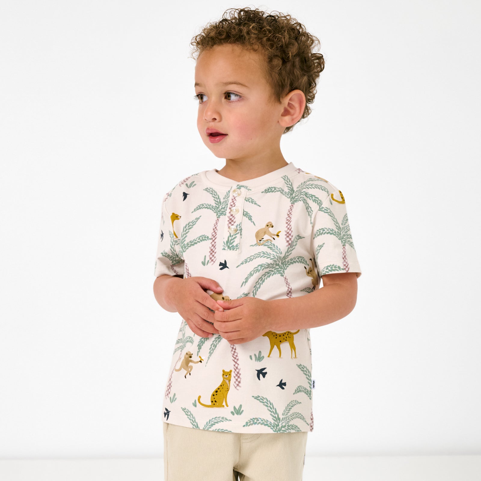 Comfy. cool. and built for wild adventures! The Wild Escape Henley Tee is made from durable Soluxe® Bamboo with a comfy French terry interior for extra softness. With a relaxed fit and functional buttons at the front. it’s easy to layer. mix. and match ??a Play fave for your little explorer!